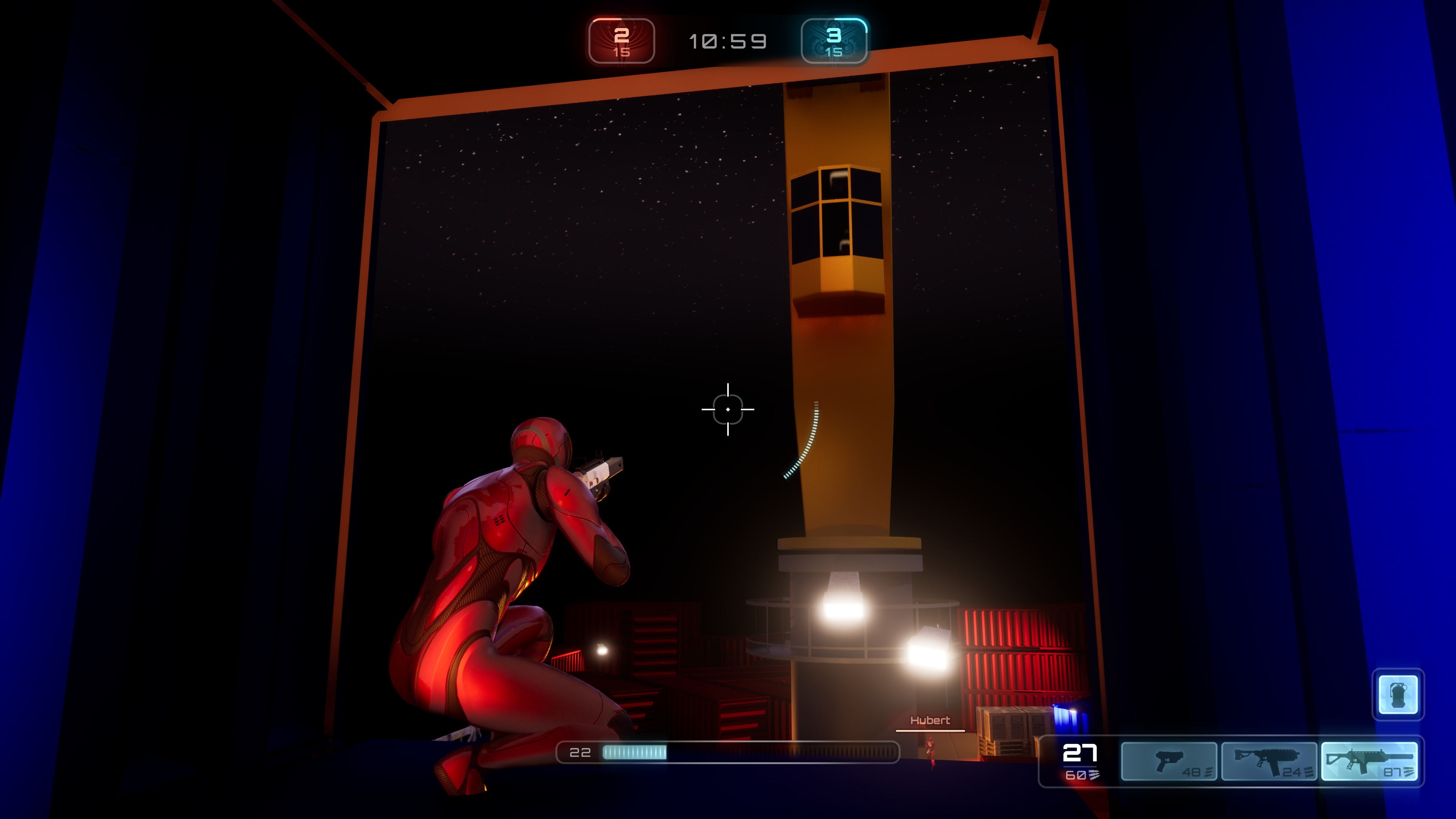 A 2v2 shooter game level created in Unreal Engine 5 Lyra Elimination mode.